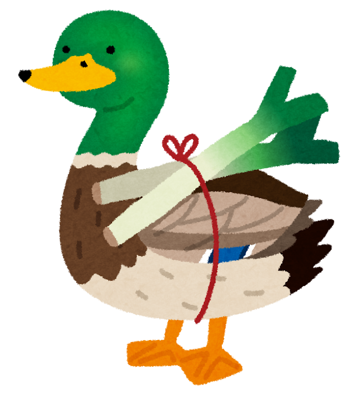 鴨がネギを背負って来るイラストのフリー素材 イラストイメージ